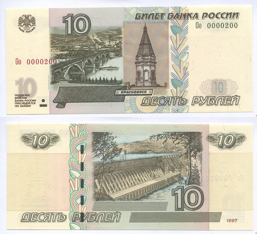 РФ. 10 руб. Банк России. 2004 г. Оо 0000200
