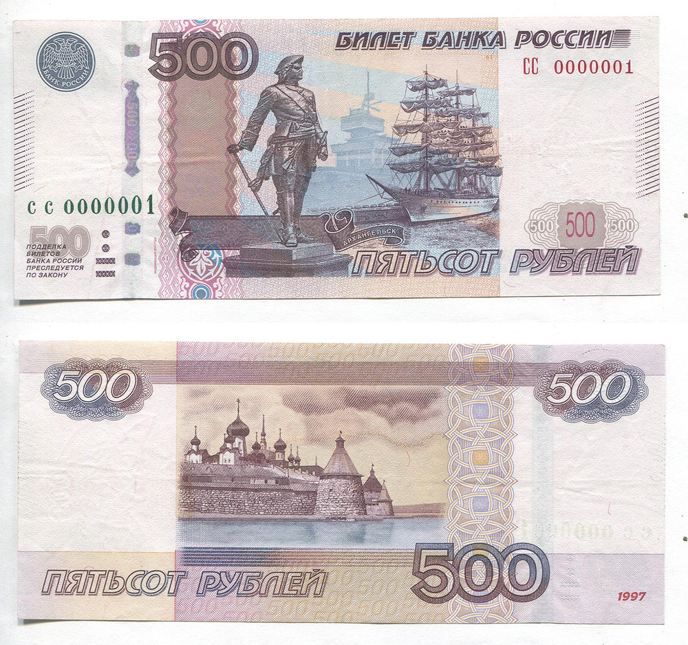 РФ. 500 руб. Банк России. 2010 г. СС 0000001