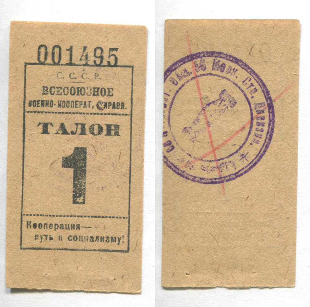 СССР Всесоюзное военно-кооперат. управл. талон 1. Рябч 2 не описан, №001495