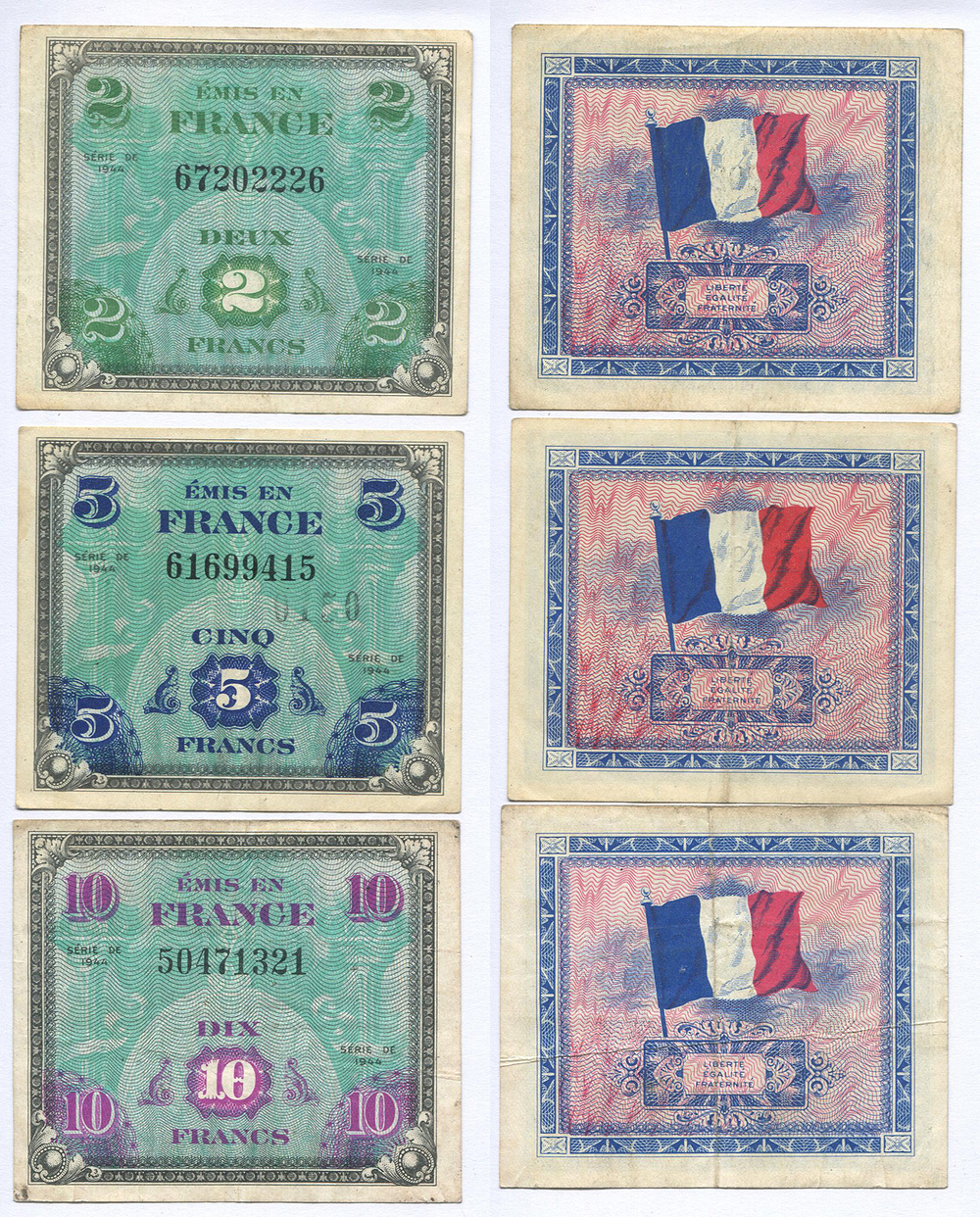 Групповой лот.Франция. Военные деньги. 2, 5 и 10 франков. Pick № 114-116. 3 шт.