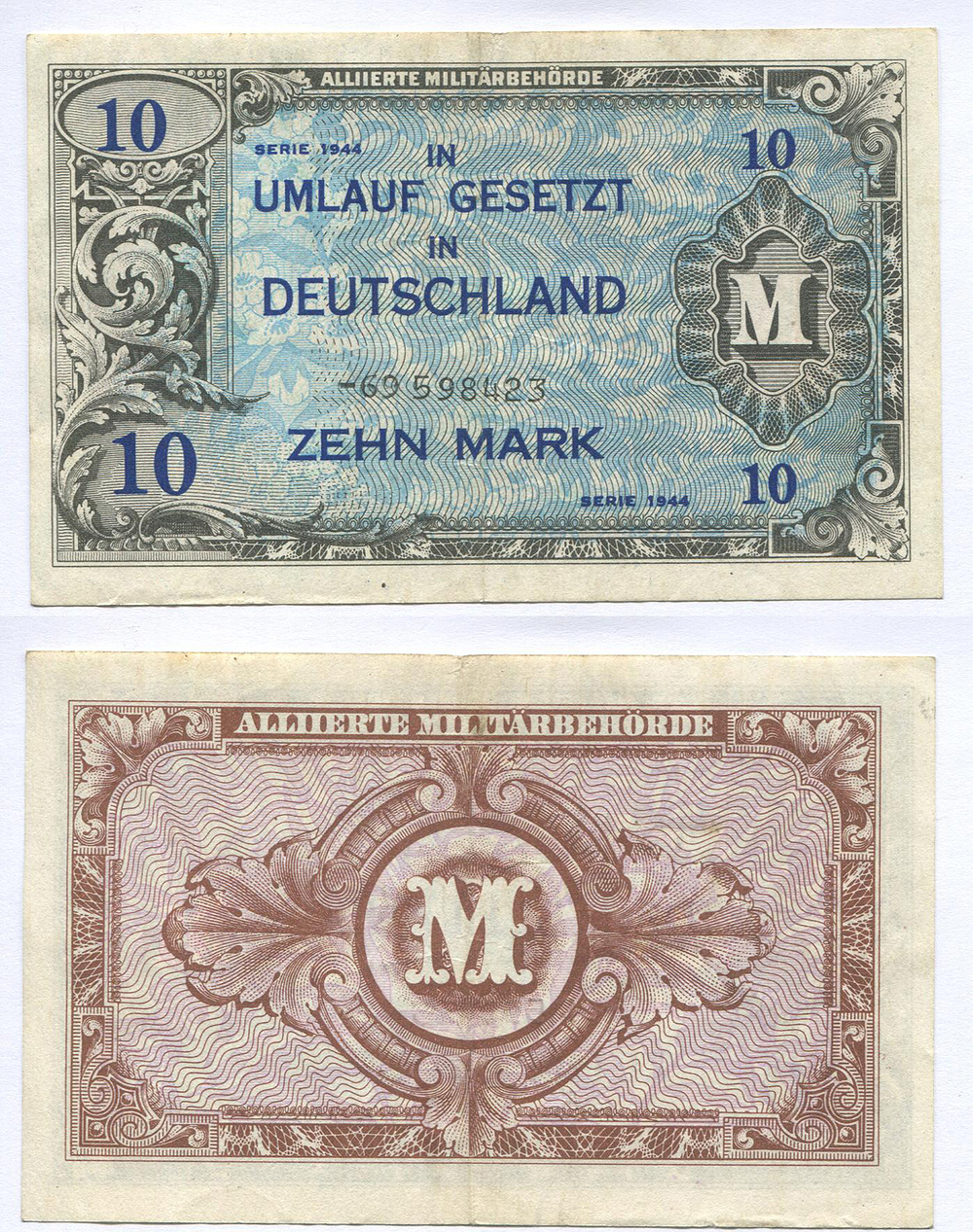 Германия. Оккупационная зона. 10 марок. Pick № 194d # -69598423 нет F в виньетке