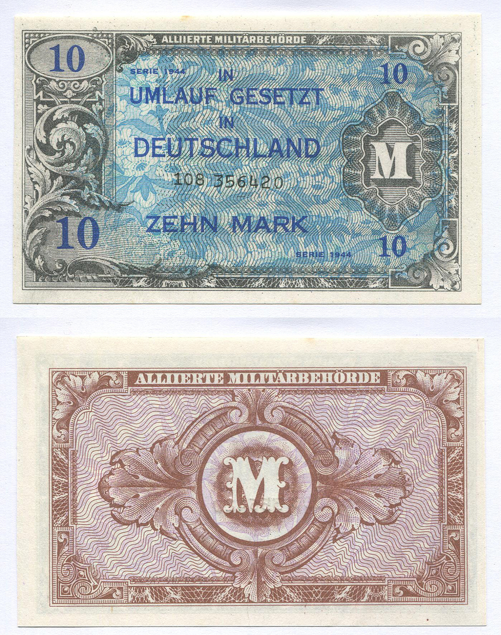 Германия. Оккупационная зона. 10 марок. Pick № 194b # 108356420 нет F в виньетке