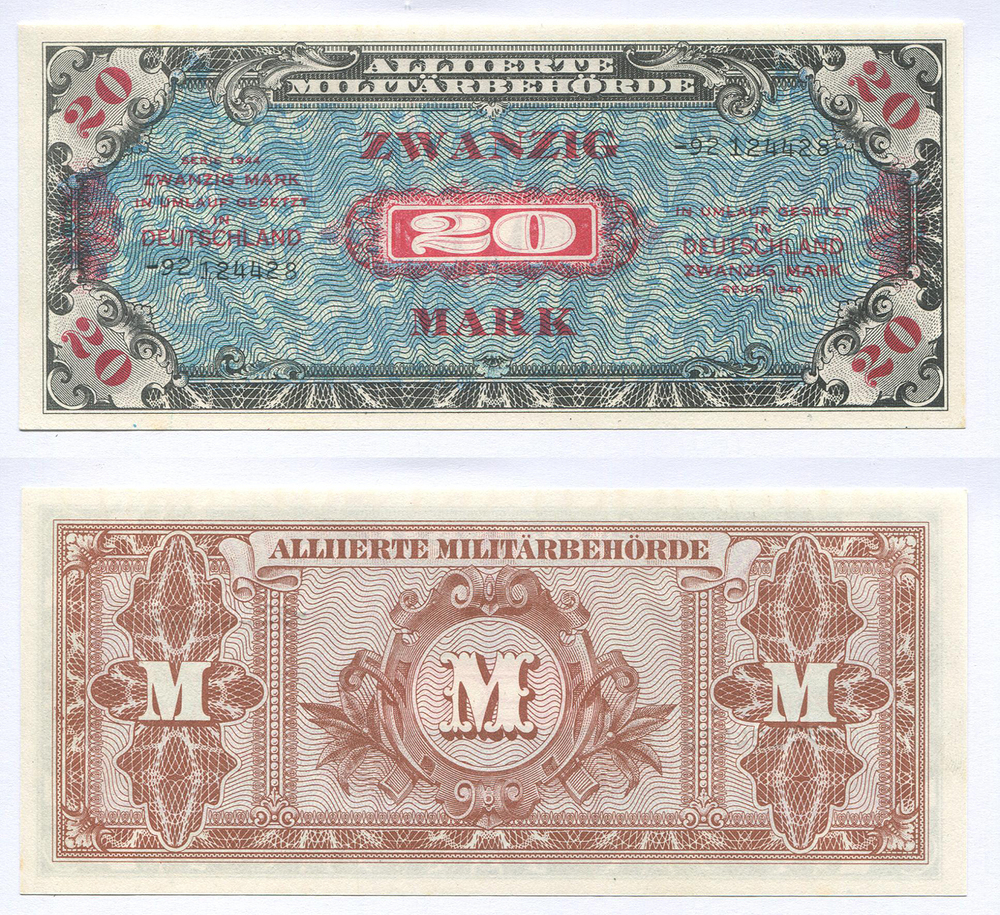 Германия. Оккупационная зона. 20 марок. Pick № 195d # -92124428 нет F в виньетке