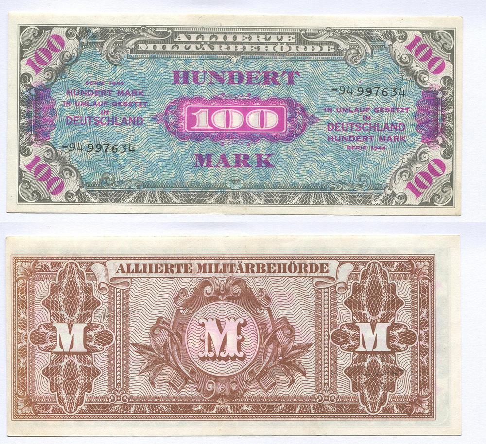 Германия. Оккупационная зона. 100 марок. Pick № 197d # -94997634 нет F в виньетке