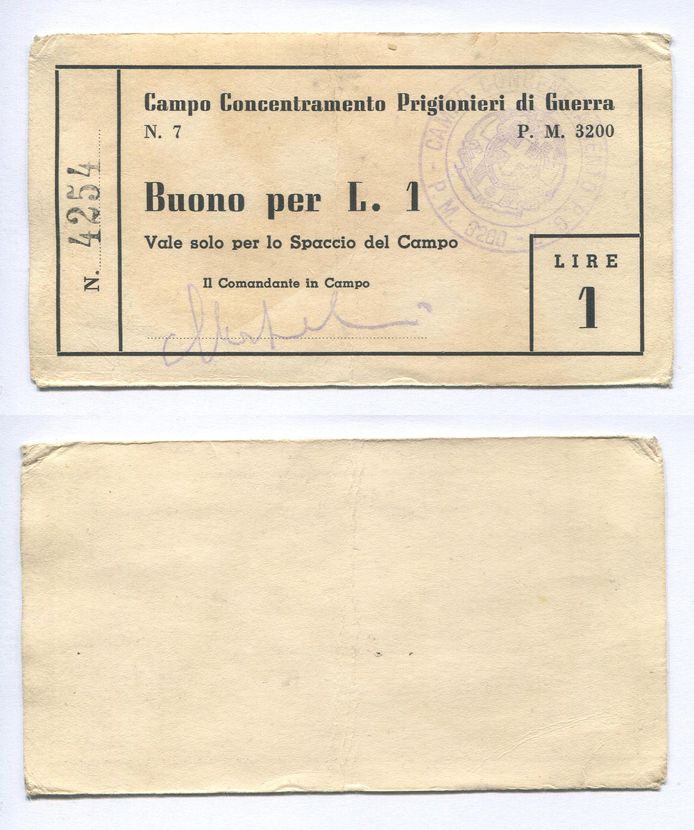 Италия. Концлагерь для военнопленных № 7. Бон. 1 лира. 1939-1945 гг. # 4254