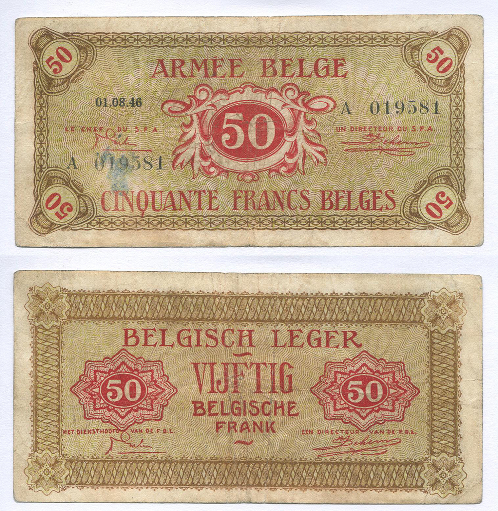 Бельгия. Армия Бельгии. Оккупация Германии. 50 франков. 01.08.46 г. Pick № M6a # A 019581