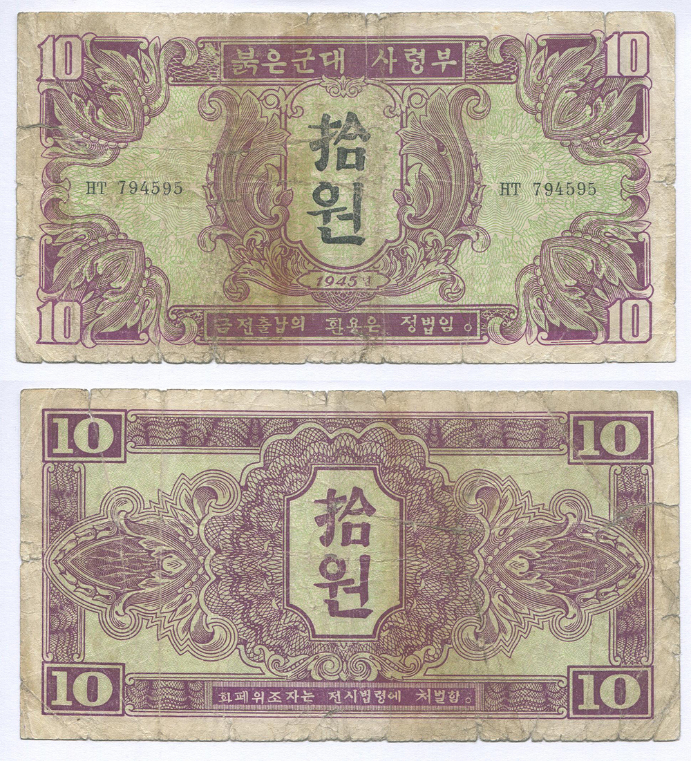 Северная Корея. Выпуск Советских войск. 10 вон. Рябч.2 № 27975 # НТ 794595