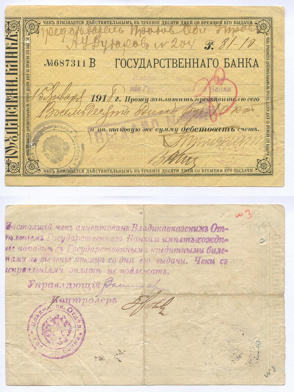 Владикавказ. Отделение Гос. Банка. 81 руб. 10 коп. №687311
