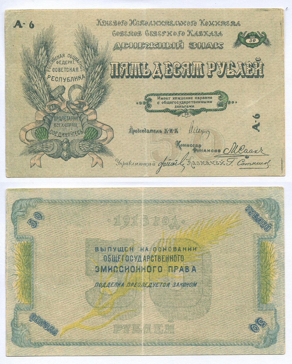 Северо-Кавказская ССР. Краевой Исп. Ком. Советов Сев. Кавказа. 50 руб. # А-6
