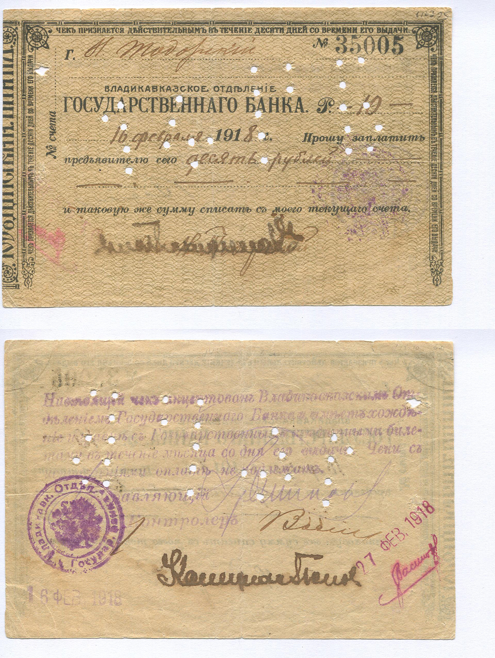 Владикавказ. Отделение Гос. банка. 10 руб. №35005