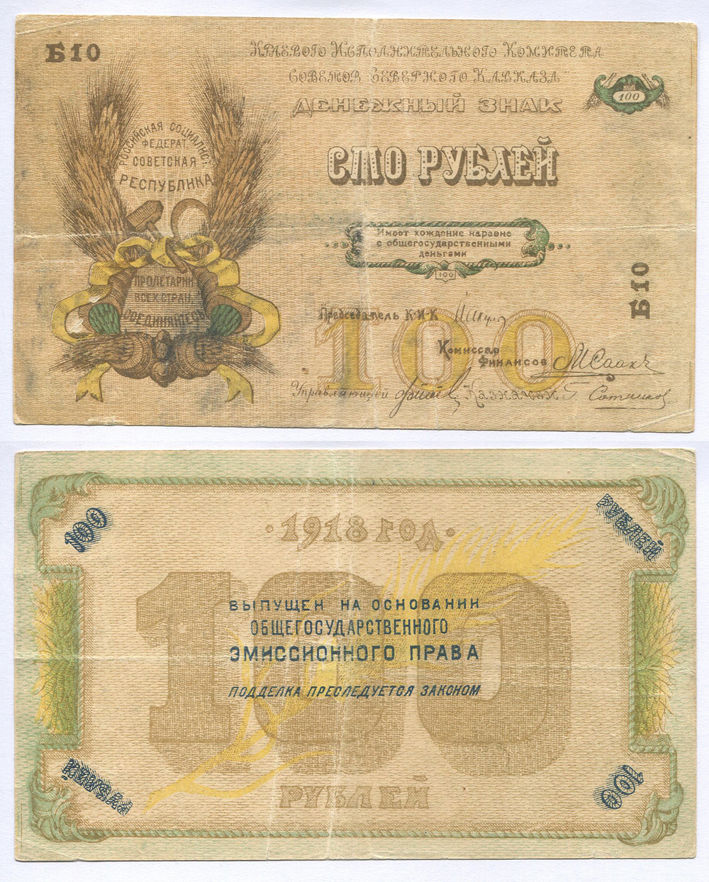 Северо-Кавказская ССР. Краевой исполнительный комитет. 100 руб. # Б10