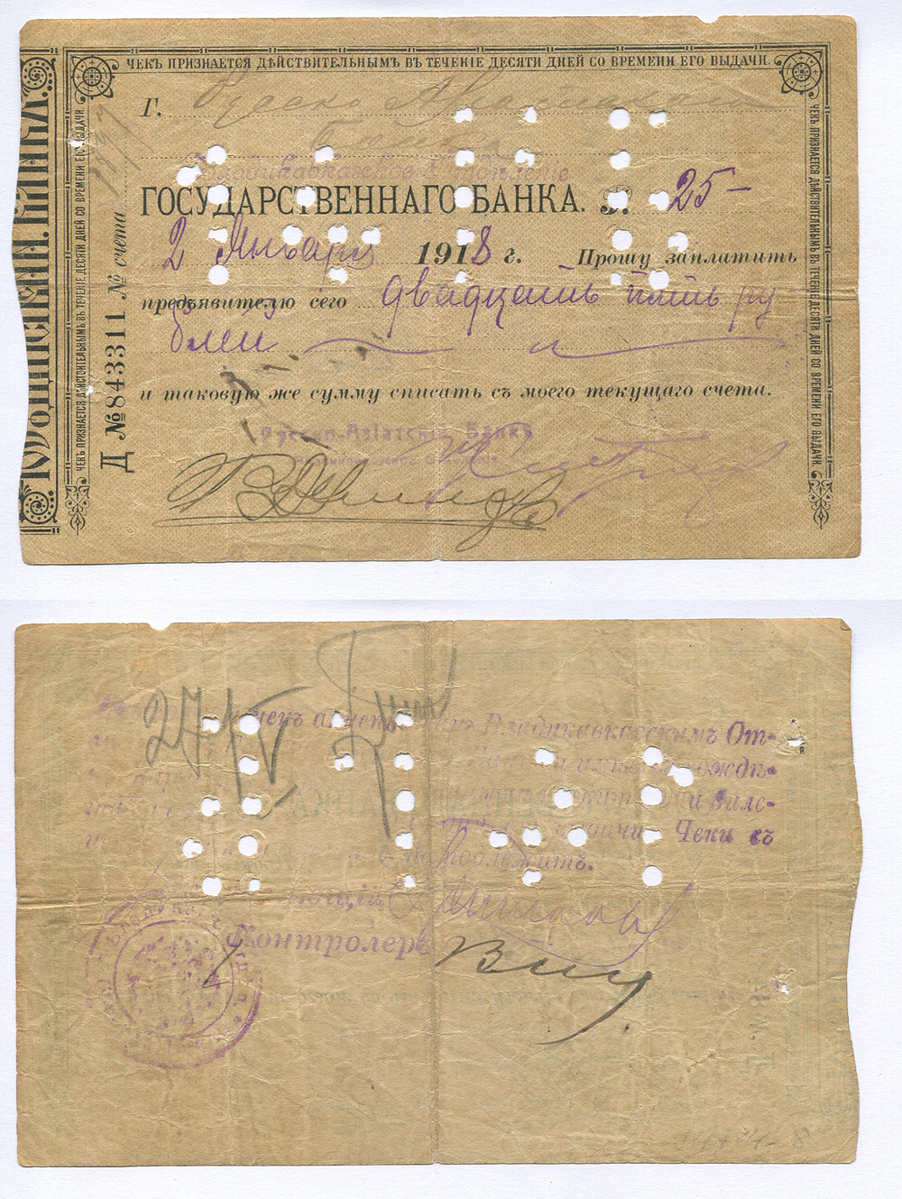Владикавказ. Отделение Гос. Банка. 25 руб. Д №843311