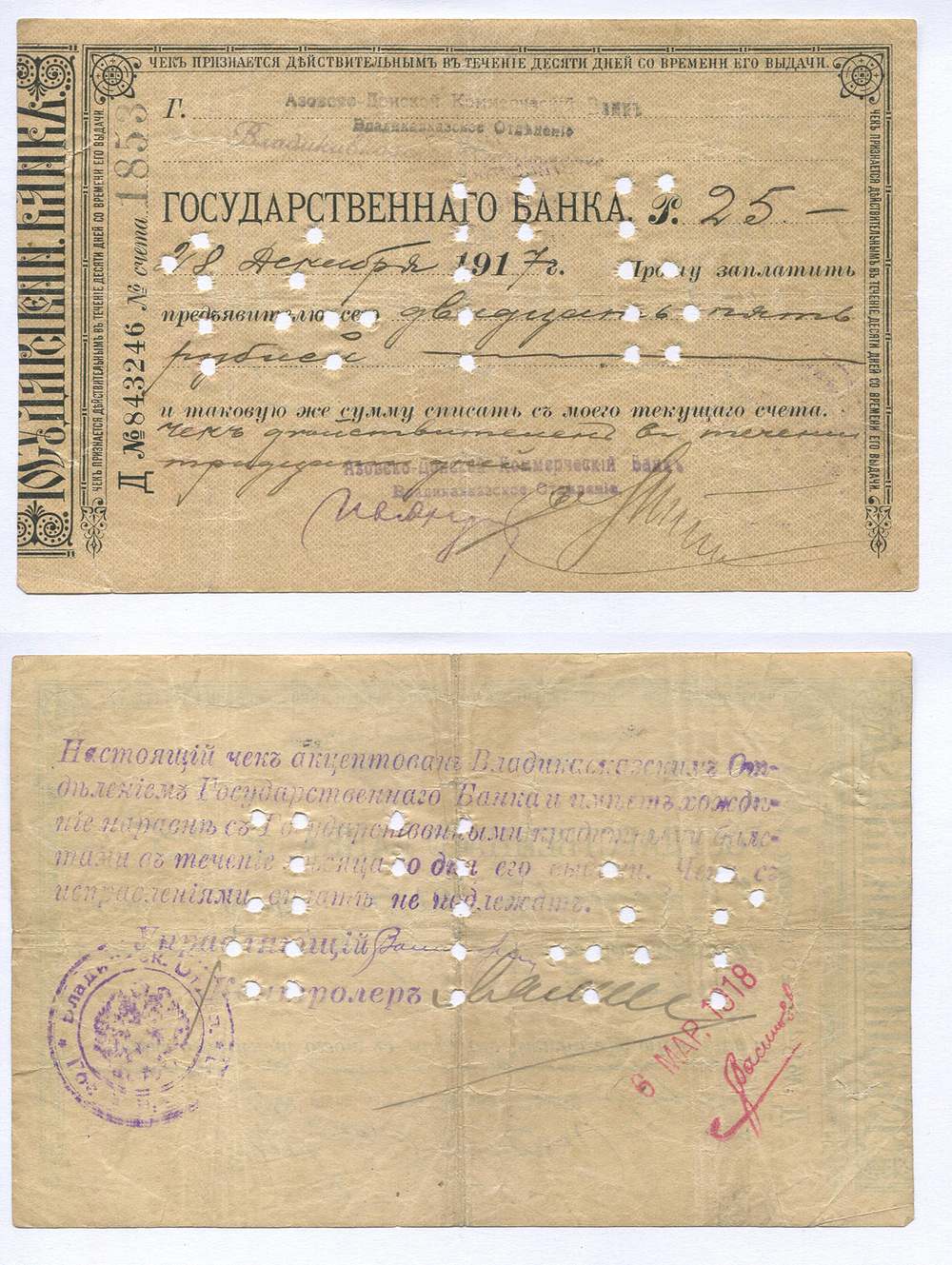 Владикавказ. Отделение Гос. Банка. 25 руб. Д №843246