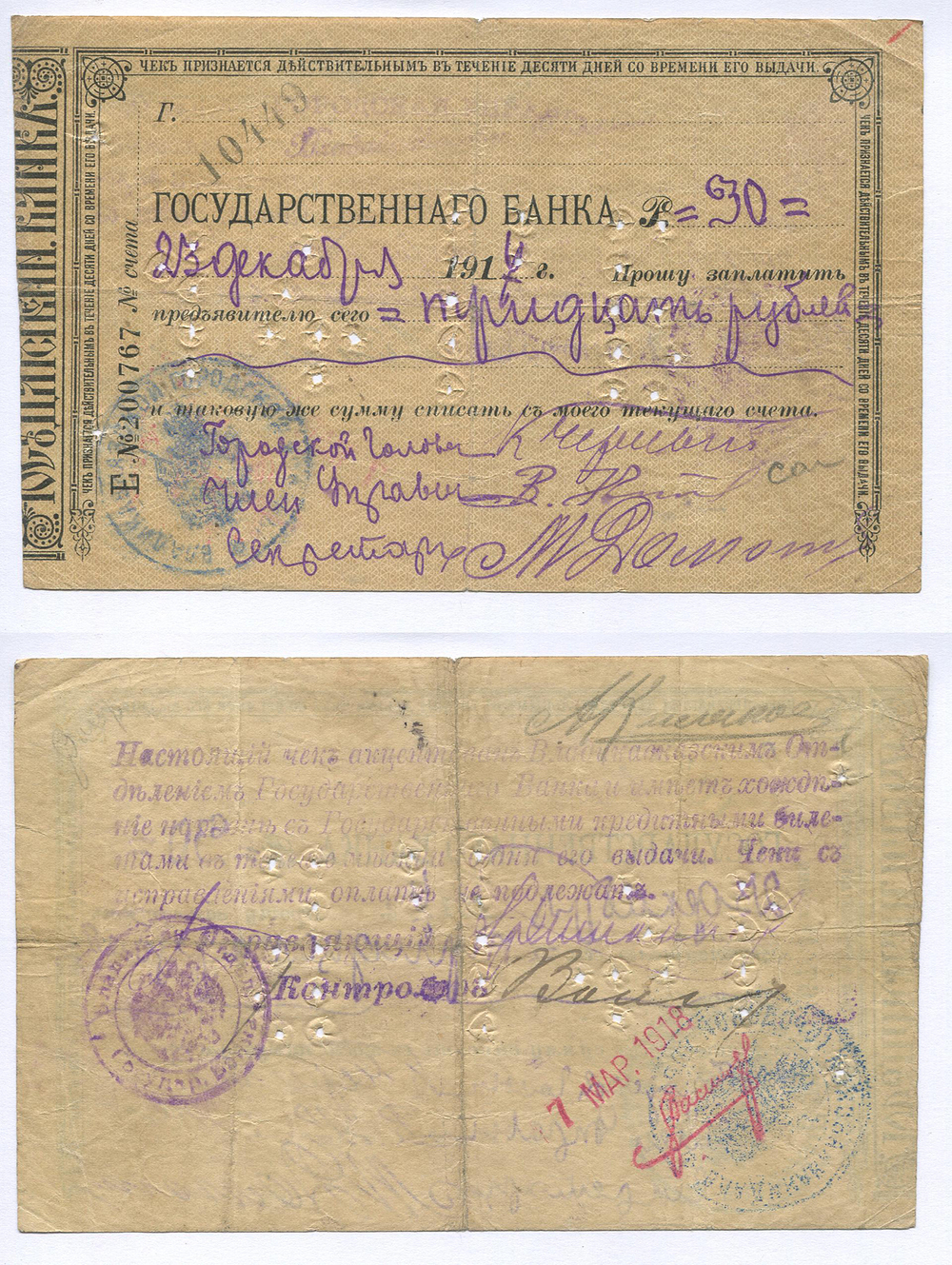Владикавказ. Отделение Гос. банка. 30 руб. Е №200767