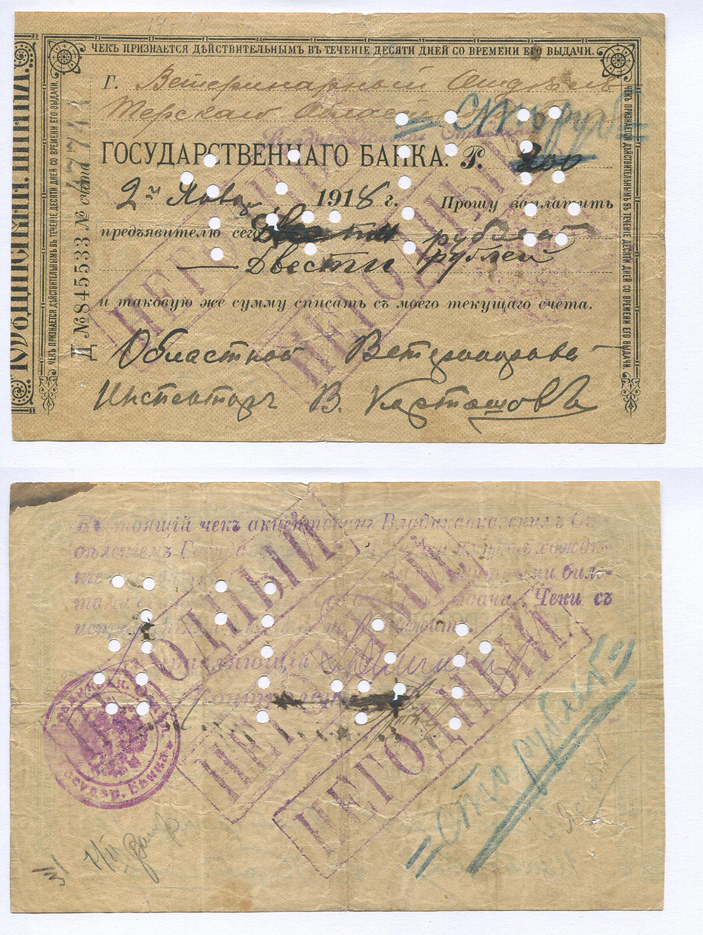 Владикавказ. Отделение Гос. Банка. 200 руб Д №845533 Исправлено на 100 руб