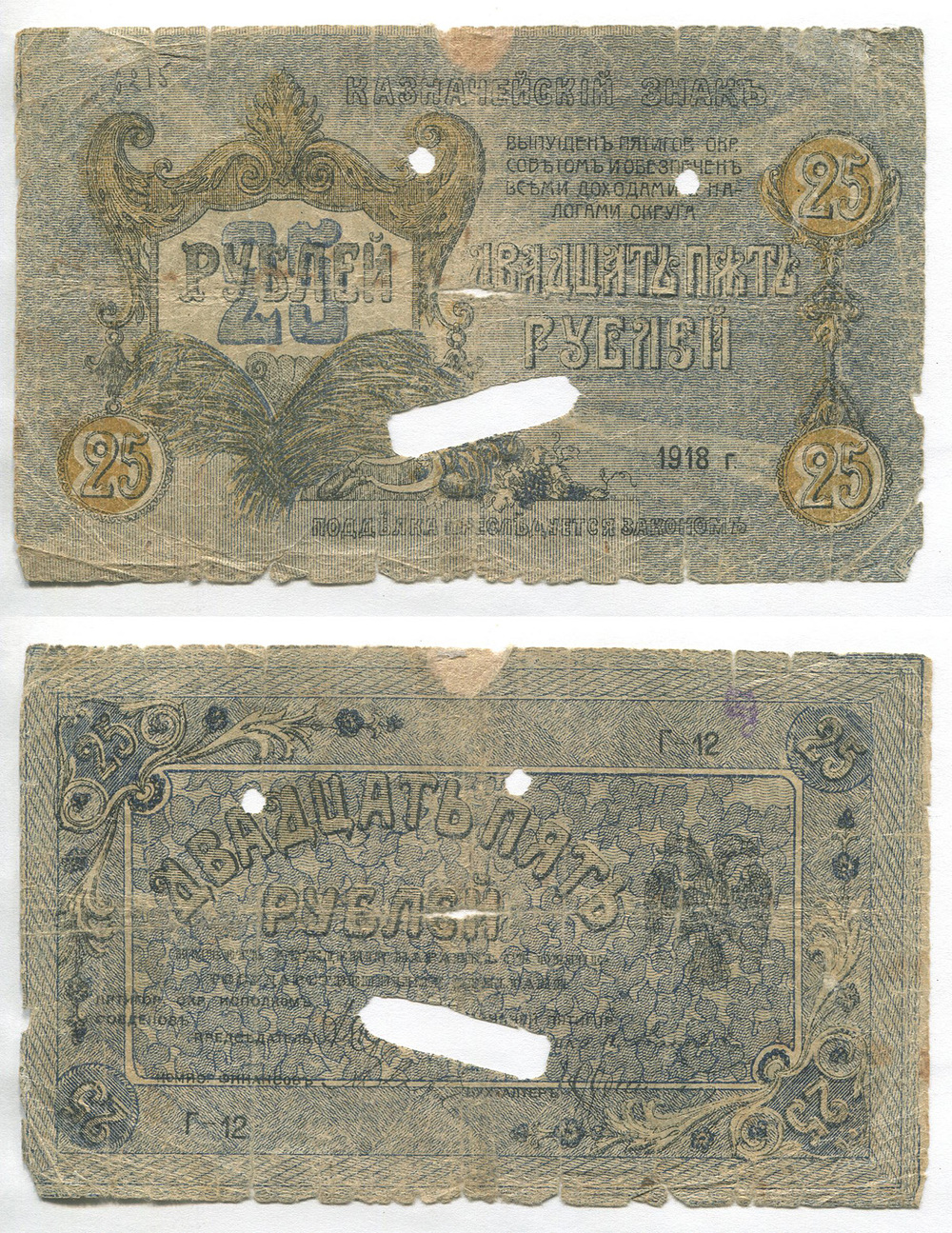 Пятигорск. Окружной Исполком Совдепов. Казначейский знак. 25 руб. # Г-12
