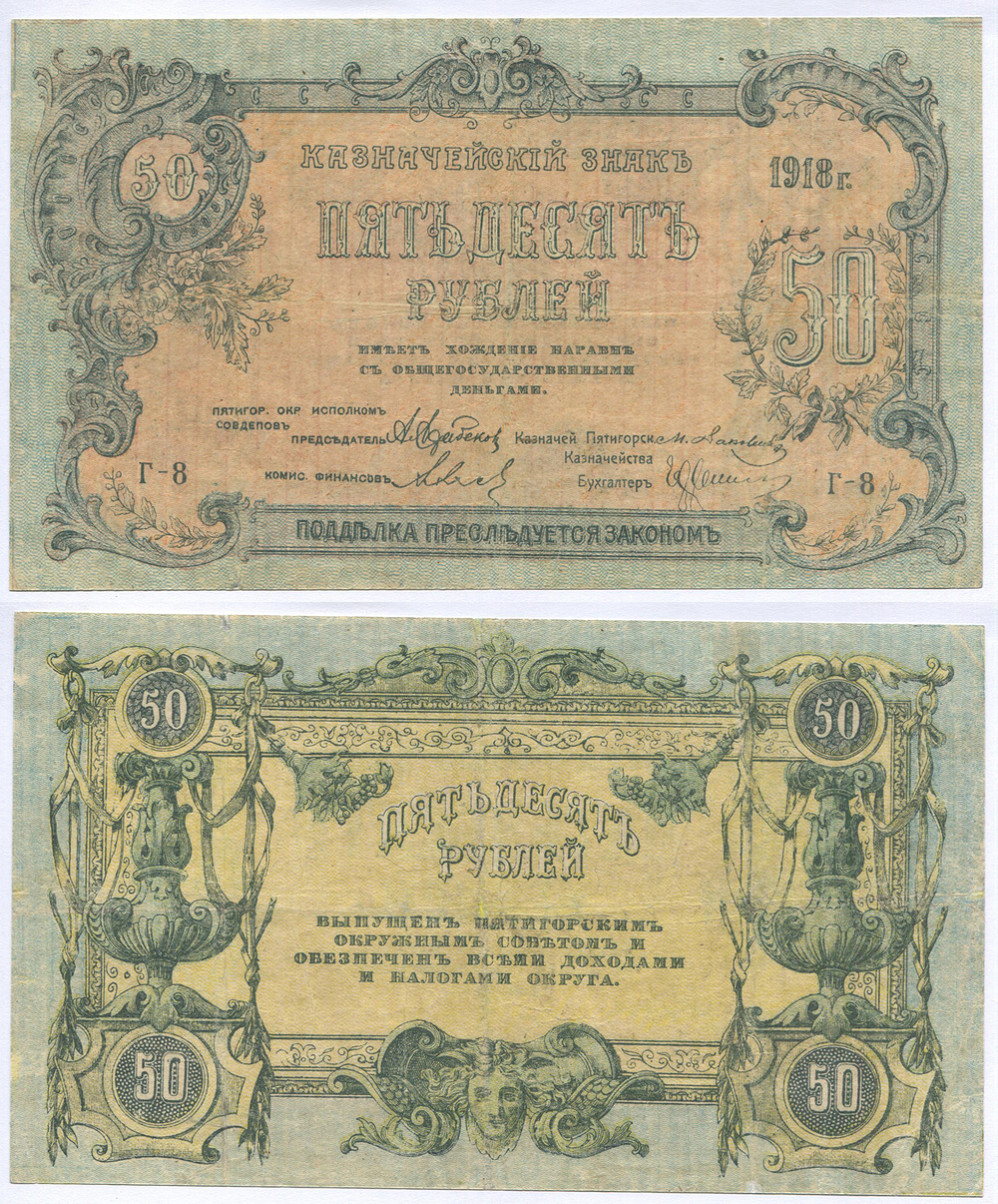 Пятигор. окр. исполком СОВДЕПОВ. 50 руб. 1918 г. Г-8