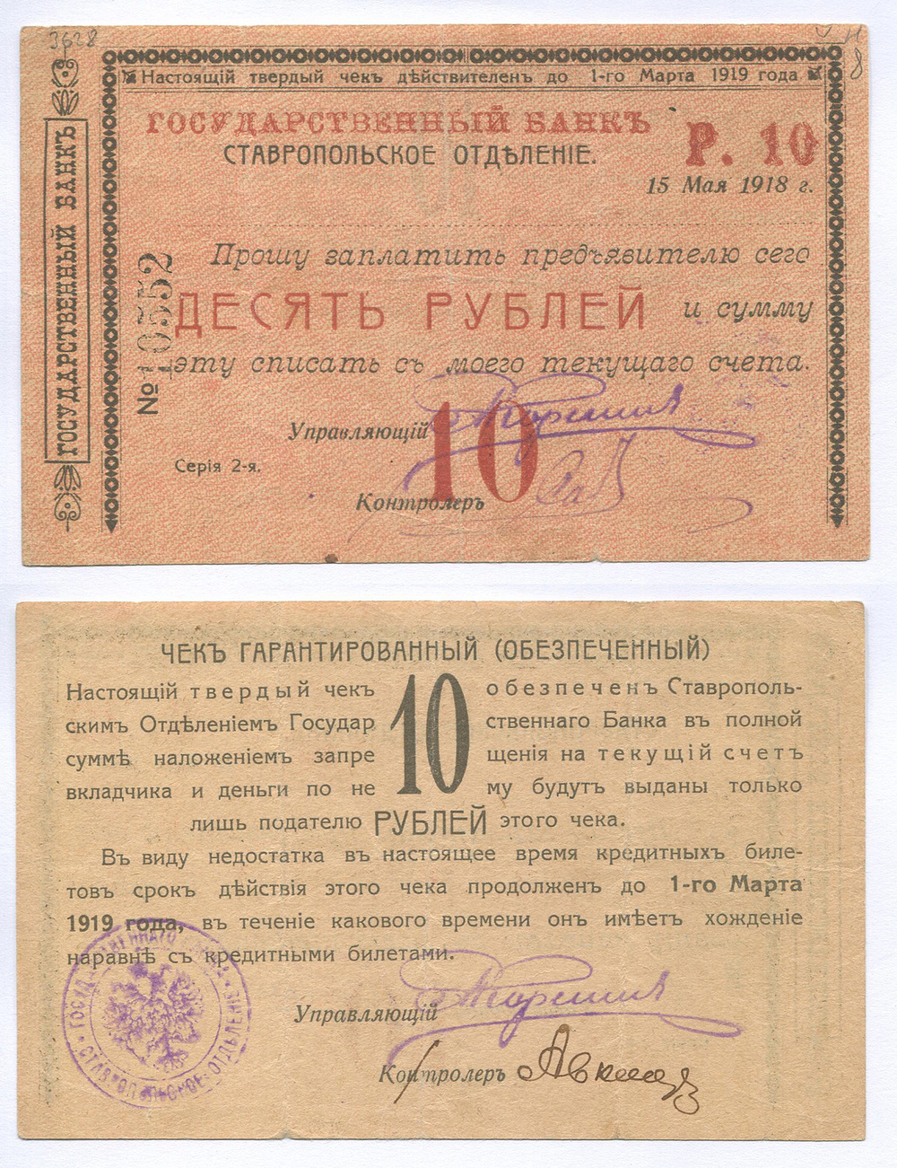 Ставрополь. ОГБ. 10 руб. №10552 1918 г.