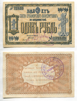 Владивосток. Союз Приамурских Кооперативов. Билет. 1 руб. Рябч.2 № 10861 # 77839