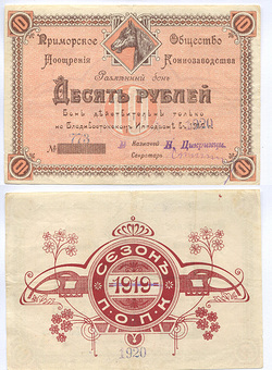 Владивосток. Приморское Общество Поощрения Коннозаводства. 10 руб. Рябч.2 № 10913 # 773