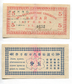 Харбин. Буфет-ресторан ж/д собрания. Разменный купон. 3 руб. Рябч.2 № 26264