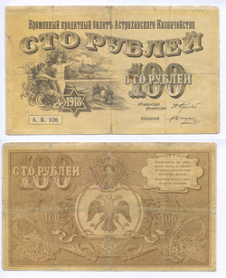 Астрахань. Казначейство. Кредитный Билет. 100 руб. Рябч. 2 № 4608 # А.К.120