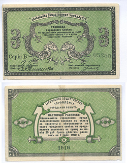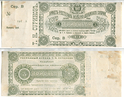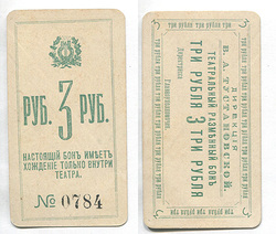 Благовещенск. Дирекция театра В. Тустановской. Разменный бон. 3 руб. Рябч.2 № 10777 # 0784