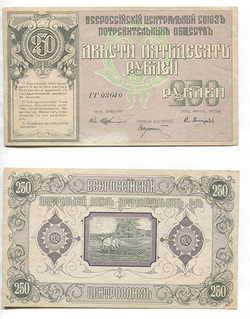Владивосток. Всероссийский Центральный Союз. Бон. 250 руб. Рябч.2 № 10857 # ГГ 03040