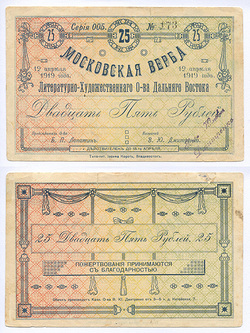 Владивосток. Литературно-худож. общество "Московская верба". 25 руб. Рябч.2 № 10944 # 173