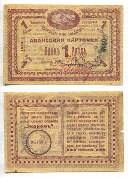 Чита. Потребительское Общество "Эконом". Авансовая карточка. 1 руб. Рябч.2 № 10301 # ?40?