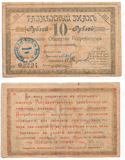 Нерчинск. Городское об-во потребителей. Авансовая карточка. 3 руб. 1918 г. Рябч. 2 №10125 # 2395