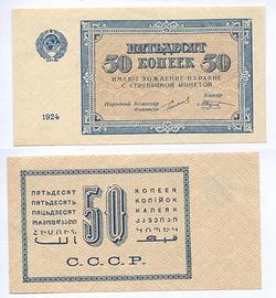 СССР. 50 коп. наравне с разменной серебряной монетой 1924 г.