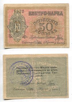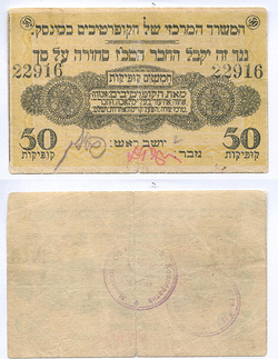 Минск. Центральное бюро кооперативов. 50 коп. № 22916 на еврейском языке