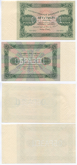 РСФСР. Государственный денежный знак 5000 руб. 1923 г ЯЯ-9002 Образец 2 шт