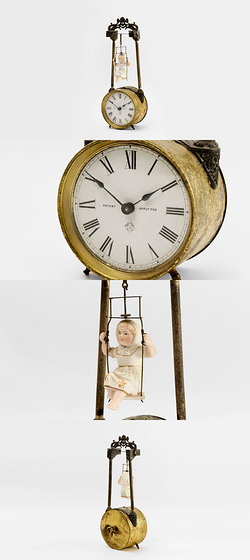 США, Нью-Йорк, 1894 г. Модель: "Swing № 1". Металл, эмалевый циферблат. Статуэтка выполнена из бисквита с росписью. Высота: 29 см. Не на ходу. Не обслужены.